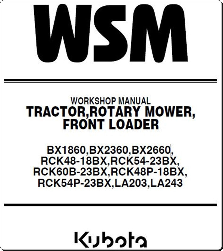 Manual de serviço para tratores Kubota BX1860, BX2360 e BX2660 – Tenha total controle na manutenção de modelos compactos e eficientes. Idioma: INGLÊS | Formato: PDF