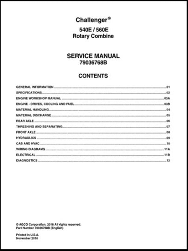 Manual de serviço para colheitadeiras rotativas CHALLENGER 540E e 560E – Ideal para manutenção técnica de máquinas agrícolas de alto rendimento. Idioma: INGLÊS | Formato: PDF