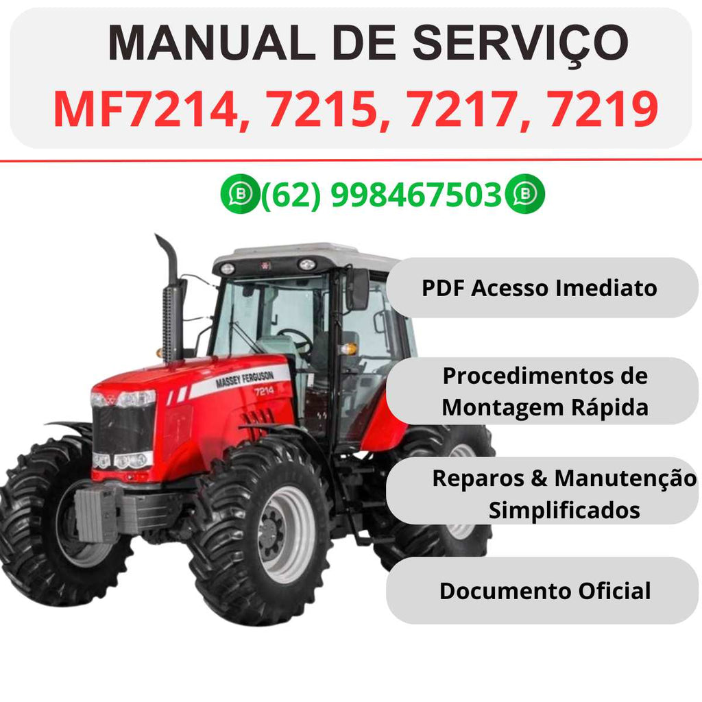 📘 Este manual técnico completo da linha Massey Ferguson MF 7200 é indispensável para oficinas, mecânicos e profissionais que atuam com manutenção agrícola. Com 1.037 páginas, o material cobre todos os sistemas da máquina, com instruções detalhadas, diagramas e ajustes recomendados pelo fabricante.