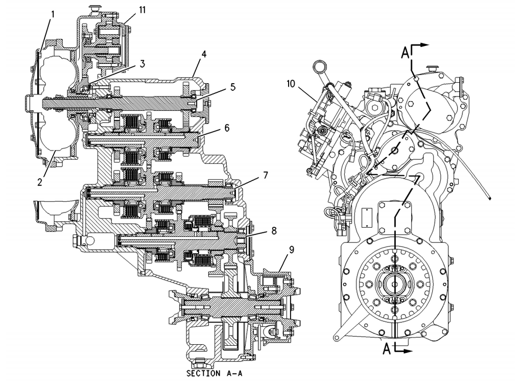 Para transmissão, estrutura e sistemas operacionais: Power Train, Frame and Body, Braking System, Steering System, Hydraulic System, Implements, Work Tools e Operator Station.