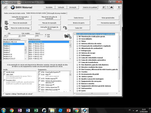 | PROGRAMA DE MANUAIS DE SERVIÇO E REPAROS PARA MOTOS BMW DE 1994 A 2016. O PRODUTO SERÁ ENVIADO POR LINK PARA DOWNLOAD. ACOMPANHA VÍDEO DE DEMOSTRAÇÃO DO USO. IDIOMA: PORTUGUÊS TAMANHO: 3GB ALGUNS DOS MODELOS CONTIDOS: Modelos: R K50 - R 1200 GS, K50 Modelos: R K2x - R 1200 GS, K25 GS K25 11 31 Adventure, K25 02, 12, 32 / HP2 Enduro, K25 HP, HP2 Megamoto, K25 HP, R 1200 S, K29 / HP2 Sport, K26 HP / R 1200 R ST K28, K27 11 / R 900 RT, K26, K26 11 Veículo Especial / R 1200 RT K26, K26 11 Modelos: K,K4x, 4cil. - K 1200 R, K43 / K 1300 RM K43 11 / K 1200 S, K40, K40 11 / K 1200 GT, K44 31 Modelos: K,K48, 6cil. - K 1600 GT, K48 / K 1600 GTL, K48 Modelos: F K7x - F 650 GS, K72 / F 700 GS K70 11 / F 800 GS, K72, 11 / F 800 R, K72, K73 02, F 800 S, K71, ST, GT Modelos: S - S1000 RR, K46 / S 1000 RR, K46 11 / HP4, K42 Modelos: C - C 600 Sport, K18 / C 650 GT, K19 Modelos: F - F 650 GS, R13, Dakar, E169, MU, E 169 S, CS, K14, K14 02 Modelos: G - G 450 X, K16, / G 650 Xchallenge, K15, Xcountry, K15 / G 650 Xmoto, K 15, G 650 GS, R13 31, R13 40 / G650 GS Sertão, R13 40 Modelos: R 4V - R 850 GS, 259E / R 1100 GS, 259E / R 1150 GS, R21 / R 1150 GS Adventure, R21 / R 850 R, 259R / R 850 R, R28 / R 1100 R, 259R / R 850 R, 259R, R28 / R 1150 R, R28, Rockster / R... ETC |